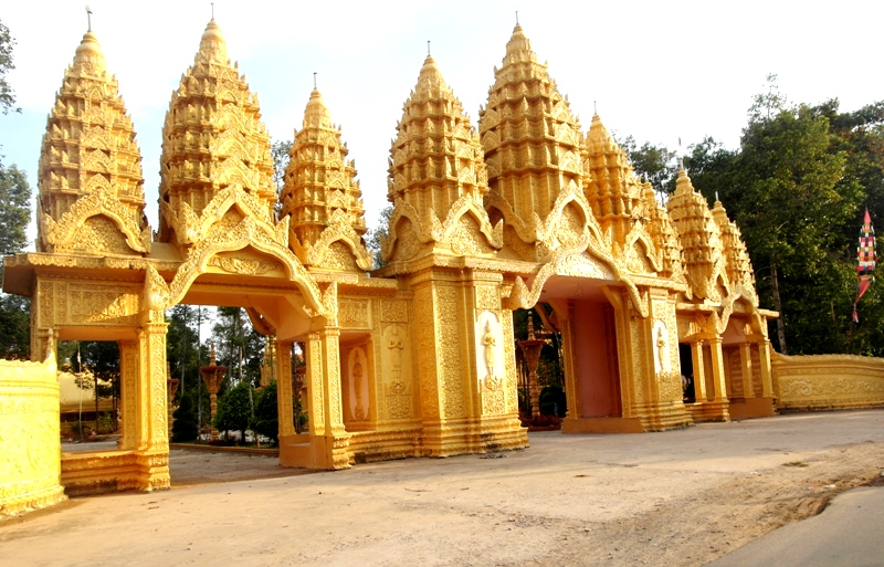 Trước tiên, phóng viên đã đến ngôi chùa Vàm Ray (Người Khơme gọi là chùa COMPONGPDHIPRUHS BONRAICHAS). Dưới ánh nắng chiều, ngôi chùa này lóng lánh vàng, rực rỡ, nguy nga như một cung điện, theo kiểu kiến trúc Angkor. Nhiều người dân địa phương cho biết, ngôi chùa mới, tráng lệ này được xây dựng trên nền của ngôi chùa cũ, đã bị mục nát theo thời gian và có lịch sử tồn tại trên 600 năm.
