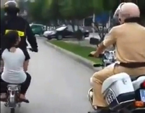 Sốt clip cảnh sát đạp xe chở nữ sinh phạm luật