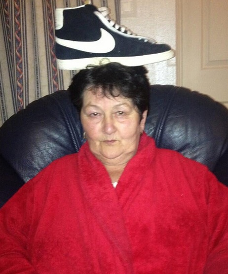 Cụ bà giữ thăng bằng đồ vật trên đầu