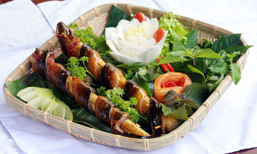 Sau đó, nhân viên nhà hàng đưa cho cô thực đơn khiến cô rất chú ý bởi nó có những món ăn đặc biệt như lươn nướng mía. Món này được làm với nguyên liệu là những chú lươn sống ở vùng nước ngọt và được bao bọc xung quanh bởi những khúc mía và được sơ chế cùng với những nguyên liệu và gia vị khác rồi nướng trên than củi. Khi cô nếm món ăn đó, cô thích nó ngay lập tức.