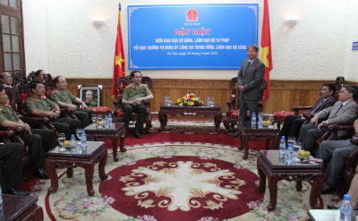 “Lực lượng Công an sẵn sàng từ thực tiễn, rút bài học kinh nghiệm để kiến nghị sửa đổi, bổ sung các văn bản pháp luật” – Bộ trưởng Trần Đại Quang cam kết. Bên cạnh đó, Bộ trưởng cũng đề nghị hai Bộ, ngành kết hợp để tham mưu, đề xuất xác đáng cho việc sửa đổi, bổ sung Hiến pháp năm 1992, tận dụng mọi “phương tiện” để tuyên truyền, giáo dục pháp luật v́ “Luật xây dựng nhiều nhưng đưa luật vào cuộc sống c̣n hạn chế”; phối hợp, chia sẻ kinh nghiệm trong công tác xây dựng các văn bản tương trợ tư pháp, đấu tranh pḥng chống tội phạm…