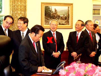 Ðỗ Trung Tá (dấu X), trong chuyến tháp tùng Chủ tịch Triết sang Mỹ