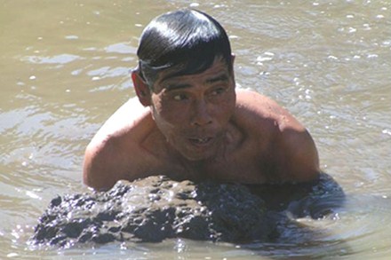 Nói có sách, mách có chứng, sẵn con mương, ông Quyến lặn tăm trước mắt chúng tôi, chỉ ít giây sau, ông bật tung khỏi mặt nước đen ngòm, trên tay ẵm khối bùn lớn ước chừng đến 60kg.