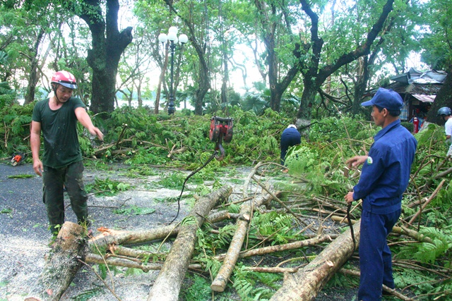 Nhiều cây cổ thụ gãy đổ la liệt sau trận gió lốc, mưa đá