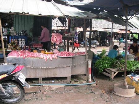 Riêng thịt heo đặc biệt vô cùng phổ biến v́ dễ ăn và dễ chế biến nhiều món. Cứ vào bất cứ một ngôi chợ to nhỏ nào th́ thấy ngay. Cứ một hàng gà vịt, hai hàng ḅ th́ phải đến bảy, tám sạp thịt heo.