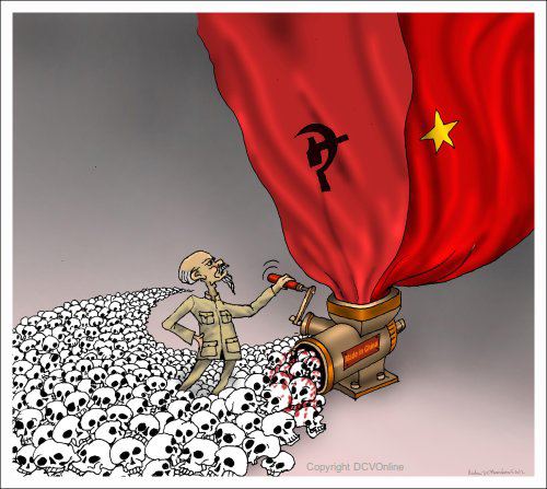 Ngay cả cuộc chiến tranh Quốc-Cộng giữa hai miền Nam-Bắc, thực chất là một cuộc chiến tranh ư thức hệ giữa Tự Do và Cộng Sản, mà chế độ cộng sản Bắc Việt vinh danh là “cuộc chiến tranh thần thánh”, th́ hàng triệu thanh niên Việt Nam của cả hai miền Nam-Bắc phải phơi thây ngoài chiến địa khi tham gia bắn giết lẫn nhau chỉ bởi câu nói “Không có ǵ quư hơn độc lập tự do” của Hồ Chí Minh, một h́nh thực xúi trẻ con ăn cứt gà tinh vi của một con người mà cả cuộc đời cả sự nghiệp được xây dựng nên bằng sự dối trá, bịp bợm. Với câu nói đó, Hồ Chí Minh đă giáo dục cho bao thế hệ thanh niên miền Bắc rằng “mạng sống của chúng mày có đáng ǵ so với cái giá trị của độc lập và tự do, hăy đi và chết đi, chết nhiều nữa đi, hăy đi và giết đi, hăy giết, giết nhiều nữa đi cho nước nhà được tự do, được độc lập”. Thế là hàng triệu thanh niên đă đi vào cuộc chiến, đă say máu chém giết lẫn nhau trong một cuộc chiến tranh huynh đệ tương tàn, khiến hàng chục triệu đồng bào cả hai miền Nam-Bắc phải bỏ ḿnh v́ chiến cuộc chỉ v́ cái chiêu bài “độc lập và tự do” đó. Và đă 38 năm rồi, kể từ ngày tàn cuộc chiến với xương chất thành núi, máu chảy thành sông v́ cái mà Hồ Chí Minh cho là độc lập và tự do đó, thế mà ngày nay Việt nam đă độc lập chưa hay vẫn c̣n nô lệ giặc Tàu, để kéo dài thời kỳ nô lệ thêm 1.000 năm nữa? Đồng bào Việt nam đă được tự do chưa hay cả 96 triệu người vẫn đang bị giam cầm trong một nhà tù lớn? Tại sao Hồ Chí Minh lại hiếu chiến hiếu sát đến vậy, với cả chính đồng bào ruột thịt của ḿnh?.