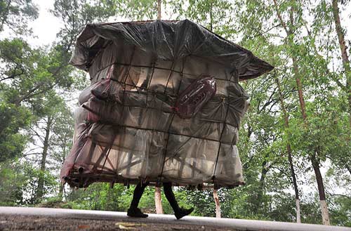 Người đàn ông “gánh” nhà trên vai