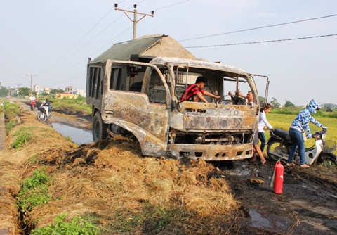 Hà Nội: Đốt rơm rạ, ô tô cháy trơ khung trên đường