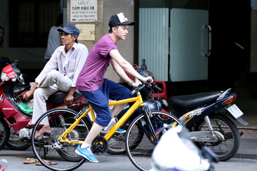 Thúy Vinh trốn con đạp xe thể dục cùng Nam Cường