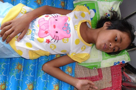 Bà H’Đuôn Knul (SN 1968), là mẹ của bé H’Phôn ủ rũ kể, vừa kết thúc năm học 2013, đang bước vào kỳ nghỉ hè để chuẩn bị lên lớp 4 thì H’Phôn bất ngờ đổ bệnh, bệnh tình của em ngày càng nặng nên gia đình gấp rút đưa em vào Bệnh viện Đa khoa Đắk Lắk điều trị. Trong thời gian khoảng 15 ngày sau khi nhập viện, bà H’Đuôn kể, khi đó H’Phôn có nói ú ớ được năm ba câu, nhưng càng lâu biểu hiện của bệnh càng nặng. Từ một người nói chuyện bình thường, H’Phôn đã không còn nói được nữa, chân tay em bủn rủn, không đi đứng được, suốt ngày chỉ nằm ngửa, mọi sinh hoạt cá nhân thực hiện ngay trên giường bệnh, và phải có người hỗ trợ. Gần một tháng qua điều trị tại Khoa nhi - Bệnh viện Đa khoa tỉnh Đắk Lắk, nhiều phụ huynh đang chăm con ở cùng phòng bệnh với em kể, mỗi khi lên cơn đau, H’Phôn vật vã khóc thét lên từng hồi, ban đêm thì cơn đau hành hạ em nhiều hơn, không đêm nào mà họ không nghe thấy tiếng H’Phôn ré trong đau đớn.