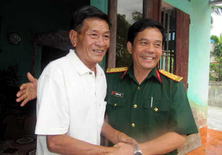 Ông Được vui mừng đón Bộ chỉ huy quân sự thành phố Hải Phòng về thăm