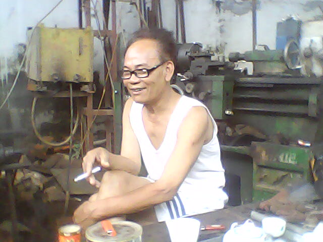 Vừa ngồi nhâm nhi ly trà, lăo nông Nguyễn Hữu Tùy vừa kể về cuộc đời cũng con đường bén duyên vào nghề (nghề chế tạo máy) của ḿnh.