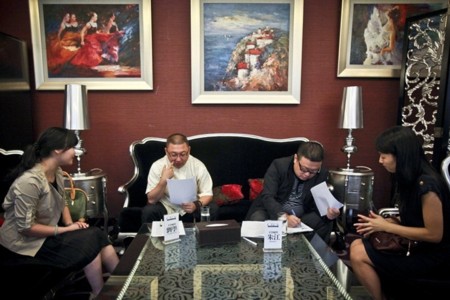 Đây không phải một buổi casting tuyển chọn người mẫu hay diễn viên mà là một buổi thi để t́m vợ cho các “đại gia” trong Câu lạc bộ doanh nhân độc thân Trung Quốc (CECS). Thành viên của CLB này đều là những người có khối tài sản từ 100 triệu nhân dân tệ (16,2 triệu USD) trở lên.