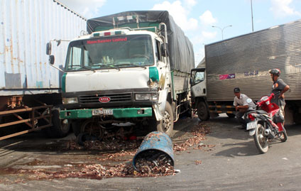 Hai cha con nhập viện vì xe tải vượt đèn đỏ