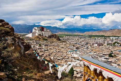 Thành phố Shigatse được bao quanh bởi những ngọn núi cao mấp mô.