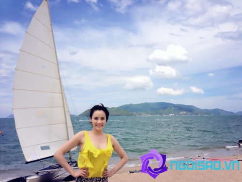 Trang Nhung khoe lưng ong, vòng 1 sexy cạnh hồ bơi