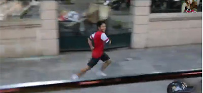 Vũ Xuân Tiên chạy theo xe buưt của đội Arsenal hàng chục dặm qua đường phố Hà Nội để cỗ vũ các cầu thủ ḿnh hâm mộ (H́nh: Website của Arsenal)