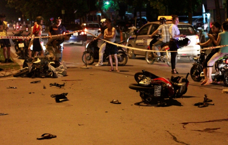 Hà Nội: Xe máy đối đầu giữa đêm bị vỡ vụn, 3 người nhập viện