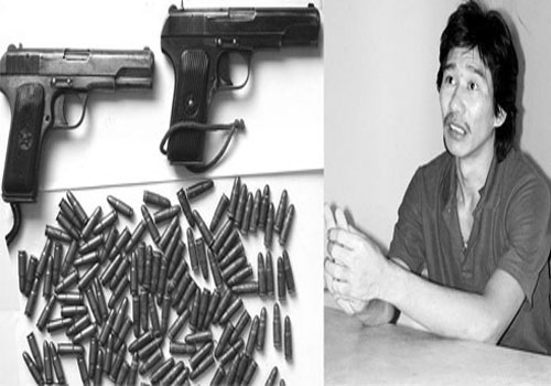 Tướng cướp Dũng “chim xanh” cùng một trong nhiều vũ khí dùng đi cướp.