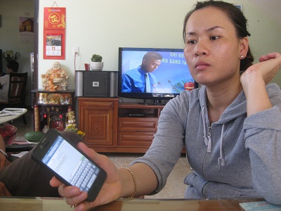 Chị Nguyễn Thị Diễm Trang với tin nhắn mà Vũ thúc giục chị giao hàng.