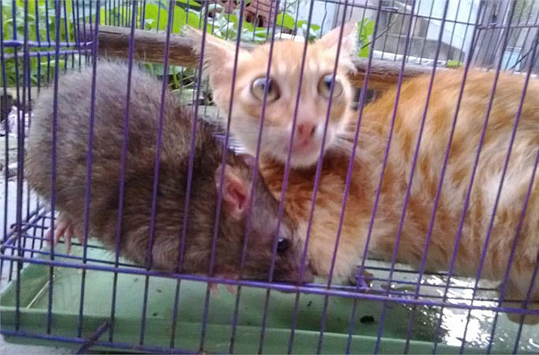 Kỳ lạ tình bạn giữa mèo hoang, chuột cống ở Hà Nội