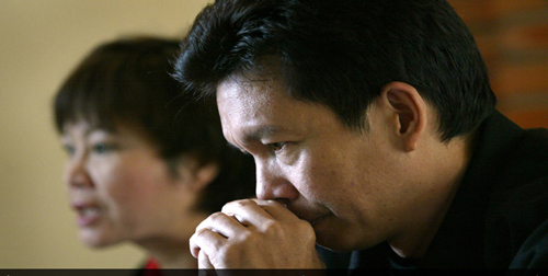 Hình ảnh Đơn Dương trầm ngâm trong một lần tiếp xúc với giới truyền thông tại Mỹ