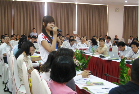 Luôn tay trong tay với bạn gái, cô gái Thảo Nguyên đến từ Tiền Giang rất lạc quan bày tỏ suy nghĩ về t́nh yêu cùng giới của ḿnh. Sự lạc quan đó đã lấy nước mắt của không ít vị đại biểu Quốc hội trong hội trường.