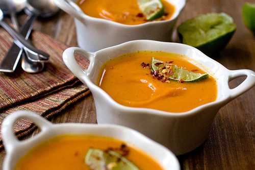 Món súp hấp dẫn này có chứa rất nhiều chất dinh dưỡng giúp chống lại mụn trứng cá. Khoai lang rất giàu beta-carotene và vitamin C, hành tây là một trong những nguồn thực phẩm tốt nhất cung cấp khoáng chất crom chống mụn trứng cá, và gừng có đặc tính kháng viêm mạnh.