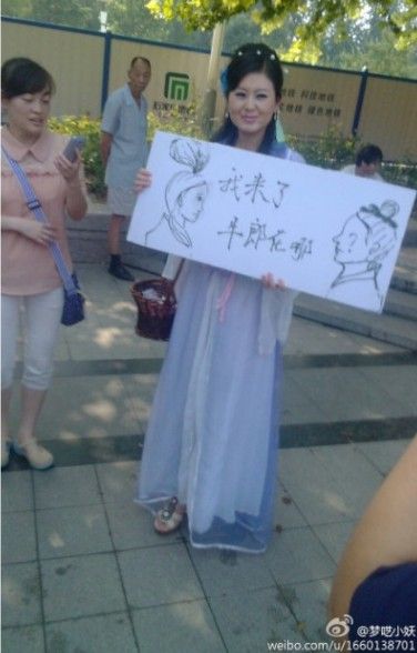 Thiếu nữ trang điểm như Chức Nữ ra đường đi tìm Ngưu Lang