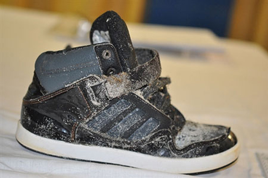 Câu cá, lôi lên chiếc giầy có các ngón chân bên trong