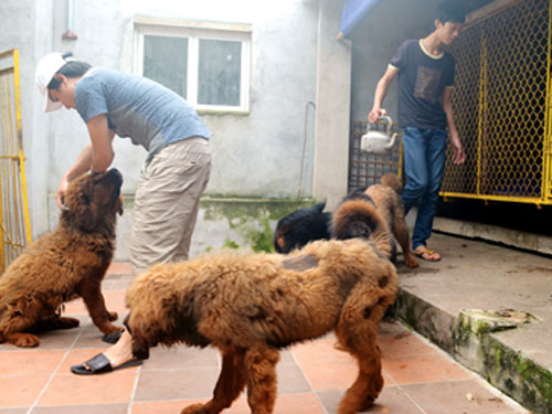 Nh́n đàn chó có tới khoảng ba chục con trong trại, tôi hỏi Hoàng kiếm đâu ra vốn để đầu tư lớn như vậy. Anh bảo, hồi đầu khó khăn lắm. Mỗi chú Ngao Tạng giá tới hàng chục triệu đồng, rồi c̣n tiền mua thức ăn cho chúng nữa, nên cũng đành ḷng phải rao bán… Không ngờ, chỉ mới thử đưa ảnh hai chú Ngao Tạng lên mạng th́ đă nhận điện thoại tới tấp… Có nhiều người không chỉ gọi điện hỏi mà c̣n lặn lội đến tận nơi để được “mục sở thị”. Chẳng mấy ngày anh đă bán hết đàn chó con. Thành công nối tiếp thành công, anh mở rộng luôn khu đất nhỏ bên cạnh nhà để làm một dăy chuồng, cùng sân chơi cho chó, có cả pḥng lạnh cho các chú khuyển chống nóng…