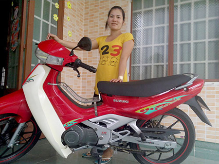 Bà bầu Nguyễn Thị Kim Bằng bên chiếc xe máy mà Đặng Văn Thân và Phan Văn Khanh định cướp