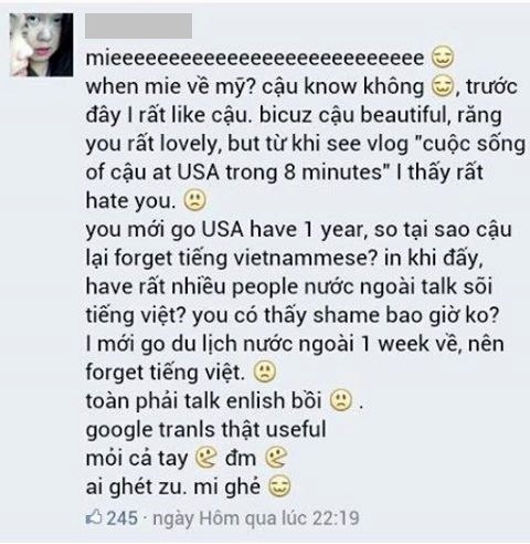 Hot girl Mie Nguyễn bị cô gái lạ đá xoáy bằng tiếng 'tây -ta' lẫn lộn