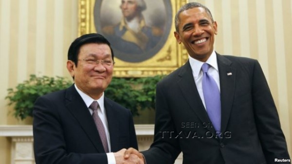 Có thể chú Sam nhận ra, nghi ngại vai tṛ của TTS nên tổ chức tiếp đón h́nh thức sơ sài như báo chí nước ngoài đă đưa tin… Ông chủ nhà Trắng vẫn đang phân vân: Vài tuần trước CTN CHXHCNVN đă đi TQ, thỏa thuận, kí cóp nhũng ǵ ? Các hiệp định đó có xâm hại quyền lợi của nước Mỹ, mà trước hết, trực tiếp là kế hoạch xoay trục chiến lược của Mỹ không ?Trong khi báo chí nhà nước VN lại thông tin, đại khái:’’Thành công mỹ măn’’ v́ kí được cả chục thỏa ước, hợp đồng… Kí với ai dân Việt chẳng mấy quan tâm, nhưng kí với ông bạn láng giềng 4 tốt th́ mọi người ngao ngán, phập phồng lo sợ cho số phận của dân tộc, biển trời của đất nước’’Ngh́n năm văn hiến’’. Nó sẽ lại bị đe dọa căng hơn v́ trong quá khứ gần, quá khứ xa : Người kí vừa ra khỏi pḥng là bao nhiêu cái Thông báo…Thỏa thuận… Hiêp ước, cả đường dây nóng nối với văn pḥng TBT đều bị xé, gỡ bỏ, sau đó, căng thẳng trên vùng biển – đảo lại tiếp tục tăng lên ở cường độ cao hơn, dân chài của ta lại bị cướp, đánh, sách nhiễu… Tóm lại Dân Việt nghĩ, cảm nhận cứ sau các chuyến thăm TQ của những người đứng đầu’’Đảng ta’’ – quốc gia ḿnh th́ tai họa lại đến.