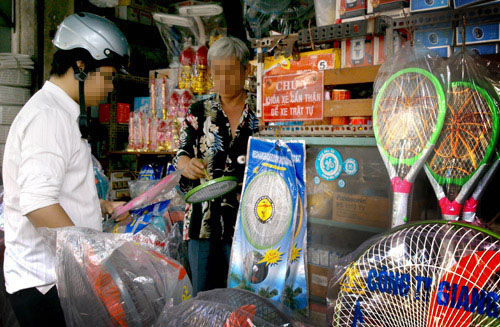 Chủ cửa hàng P.L., trên đường Quang Trung cho biết, loại vợt muỗi bằng điện đang bán là hàng từ Trung Quốc. Cửa hàng này có hai loại vợt giá 65.000 đồng/vợt và 85.000 đồng/vợt.