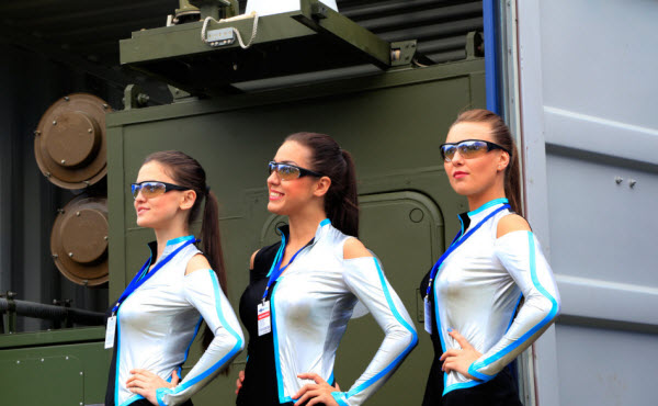 Chân dài khoe dáng bên tên lửa ngụy trang Club-K