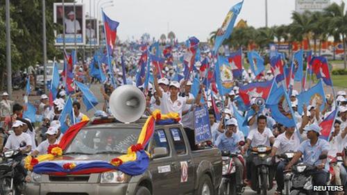 Ðảng Cứu Quốc tập hợp Ðảng Sam Rainsy và Ðảng Nhân Quyền, mới lập năm 2007. Trước cuộc bầu cử này, hai đảng lần lượt có 26 và 3 đại biểu trong Quốc Hội. Nay dân đã bầu lên 55 đại biểu Ðảng Cứu Quốc; so với 68 ghế của Ðảng Nhân Dân, so với 90 ghế họ đã có. Dân chúng Phnom Penh đã đi biểu tình ngày 24 Tháng Tư đòi chính phủ tổ chức bầu cử tự do, dân chủ và công bằng. Cuộc biểu tình lớn nhất từ trước đến nay, 4,000 người tham dự, đòi thay đổi thành phần trong Ủy Ban Bầu Cử quốc gia.