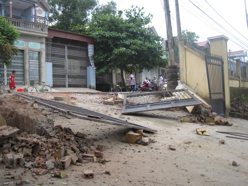 Theo thông tin ban đầu, vào thời gian trên, chiếc xe tải chở xi măng mang BKS 36C-020.94 do anh Trần Văn Hải điều khiển ra ngoài cổng trường thì thùng xe phía sau (chưa hạ xuống hết) húc phải xà ngang cổng trường khiến toàn bộ mái và bê tông cổng đổ sập xuống xe. Lúc này trong ca bin xe có 5 người nói trên.