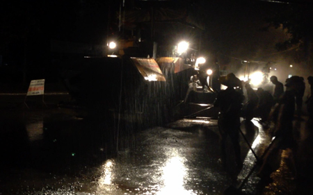 Mưa như trút nước, chủ đầu tư vẫn cho nhà thầu thảm bê tông nhựa