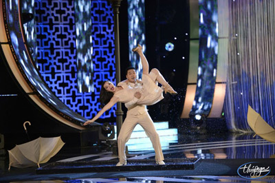 Ca sĩ Nguyễn Hưng và một vũ công trong tiết mục trình diễn tại Paris By Night 109. (Hình: Huy Khiêm)