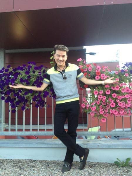 Hà Tăng mặc áo phông, quần short đi dã ngoại