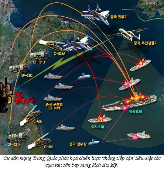 Trong 20 năm sau đó, Bắc Kinh lên kế hoạch xây dựng chiến lược “chống tiếp cận/phong tỏa khu vực”. Chiến lược này sử dụng các thiết bị quân sự và kỹ thuật của lực lượng lục quân, hải quân, không quân, mạng thông tin, không gian, dựa vào tàu ngầm, thủy lôi tiên tiến, vũ khí chống tàu... để tiêu diệt các hạm đội tàu sân bay của Mỹ, ngăn cản lực lượng này tiến vào bất kỳ khu vực chiến đấu hoặc khu vực địa chính trị nào, phá hủy “tai mắt” vốn giúp quân đội Mỹ chiếm được ưu thế chiến lược quan trọng. Chiến lược cuối cùng của Trung Quốc không phải nhằm giành được chiến thắng toàn diện trong chiến tranh, mà giáng cú đòn tấn công nặng nề vào hạm đội tàu sân bay Mỹ.
