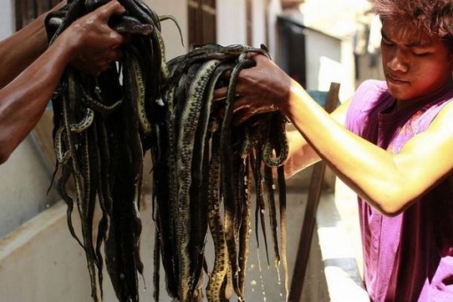 Rợn tóc gáy thăm quan lò giết mổ rắn ở Indonesia