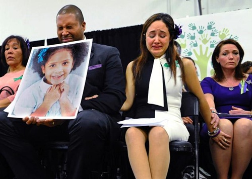 Cha mẹ của một nạn nhân trong vụ xả súng ở trường tiểu học Sandy Hookkhông ḱm được nước mắt, đề nghị hành động quyết liệt trong việc kiểm soát súng đạn trong cuộc họp báo hồi tháng một. Ảnh: AP