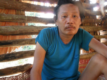 Qua lời giới thiệu của cán bộ xă Đức Minh, chúng tôi men theo con đường rừng t́m đến nhà ông Long. Vừa bước chân vào tới cổng, h́nh ảnh đầu tiên đập vào mắt chúng tôi là ngay bên cạnh căn nhà lán mái lợp cọ, tường trát đất là một cái cũi bằng gỗ rộng chừng 6m, chiều cao khoảng hơn 2m. Bên trong chiếc cũi - ông Lư Văn Long (SN 1963) đang nằm co ro người, đôi mắt đờ đẫn như không c̣n sinh khí. Khi thấy chúng tôi đến gần, ông từ từ ngồi dậy, mắt trợn trừng. Những vật dụng như chăn, chiếu của ông đă chuyển sang màu tro, đặc biệt chiếc màn để chống muỗi đen kịt như nước bùn, mùi xú uế bốc lên. Chúng tôi lại gần để hỏi chuyện nhưng ông trả lời rất chậm chạp và liên tục bị ngắt quăng.