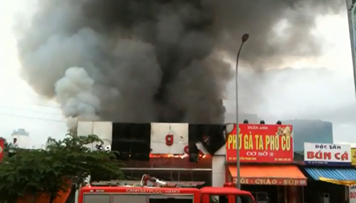 Khói cao chọc trời từ gara ô tô cháy ở Hà Nội