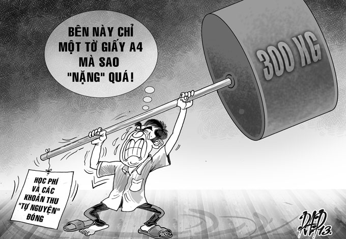 Đầu năm học phụ huynh nghèo đă rất vất vả với những khoản tiền nằm trong quy định. Họ càng vất vả hơn với nhiều khoản thu có tên gọi khác nhau: quỹ hỗ trợ phát triển giáo dục, tiền duy tŕ hoạt động, tiền hỗ trợ dạy học, tiền thu theo đồng thuận của cha mẹ học sinh...Một phụ huynh ở Trường THCS Bàn Cờ (Q.3, TP.HCM) ngạc nhiên khi nhận được tờ thông báo với nội dung: tôi là phụ huynh học sinh tên..., ở lớp..., tự nguyện đóng khoản tiền ủng hộ là .../tháng (tối thiểu 35.000 đồng/tháng) trong buổi họp phụ huynh đầu năm. Khoản tiền này phụ huynh sẽ đóng hằng tháng tại trường. Chị cho biết có người đăng kư đóng 35.000 đồng/tháng, nhưng phần đông đóng 50.000 đồng và 100.000 đồng/tháng mặc dù chính chị không rơ số tiền này dùng vào việc ǵ, tại sao “tự nguyện” nhưng lại in mẫu sẵn và phát cho tất cả phụ huynh. Chị thắc mắc: “Đầu năm tôi đă đóng gần 1 triệu đồng các khoản tiền. Chưa kể lớp con tôi đang dự kiến mua sắm thêm hai máy lạnh, một tivi tổng trị giá hơn 40 triệu đồng. Rồi lại thêm khoản tiền tự nguyện kiểu bắt buộc này nữa, quá nhiều khoản tự nguyện nhưng không đóng không được”.