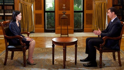 Đài truyền h́nh trung ương Trung Quốc hôm 23/9 đă phát chương tŕnh phỏng vấn Tổng thống Syria tại Damascus. Tại đây, ông Bashar al-Assad nói rằng, ông không quan tâm tới bản dự thảo nghị quyết mà Mỹ, Pháp và Anh đệ tŕnh lên Hội đồng Bảo an Liên hợp quốc yêu cầu đặt vũ khí hóa học của nước này dưới sự kiểm soát quốc tế.