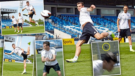 Theo đó, các ngôi sao của “kền kền trắng” sẽ lần lượt tìm cách sút trái bóng bầu dục này trúng xà ngang từ ngay vạch 16m50. Riêng Bale thì còn “đỉnh” hơn khi lùi xa thêm 10 mét mà vẫn sút trúng chai nước được Modric đặt trên xà ngang khung thành.