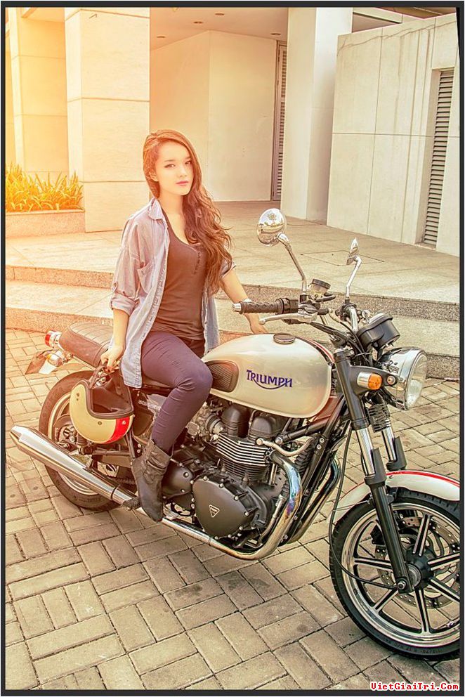 Người đẹp Sài thành với phong cách bụi bặm, phong nhã bên mẫu xe Triumph Bonneville.